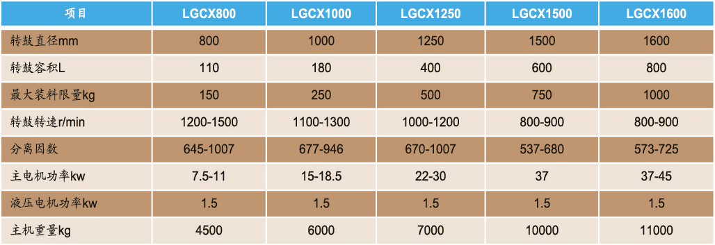 LGCX為立式刮刀抽吸卸料自動離心機,液/固混合流體通過進料管進入離心機轉鼓內(可在低速或中速進料),在離心力場作用下,通過濾片截留固相,濾出液相。持續(xù)進料,直至料滿,停止進料,如工藝需要時則對濾餅進行洗滌、提純,同時將洗滌液濾出。進一步脫液,直至達到分離要求。降至低速,刮刀將大部分濾餅刮下,同時氣流抽吸裝置將濾餅抽出,完成一次工作循環(huán)。刮刀動作與氣流抽吸裝置通過料位探測自動匹配聯(lián)動。