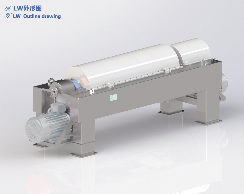 Once the suspension fed into the centrifuge drum via feed pipe, solid phase of it of higher density will be settled down and attached to wall surface of the rotor drum under effect of centrifuge field. which will be screw pushed to drying area before it's discharged via slag outlet,the clarified Iiquid phase of it will be overflowed via the overflow port of the rotor drum,hence to realize solid and liquid separation.